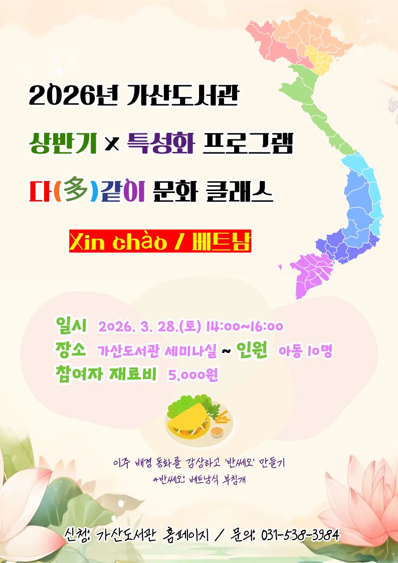2026년 가산도서관 상반기 프로그램 '다(多)같이 문화 클래스: 베트남'