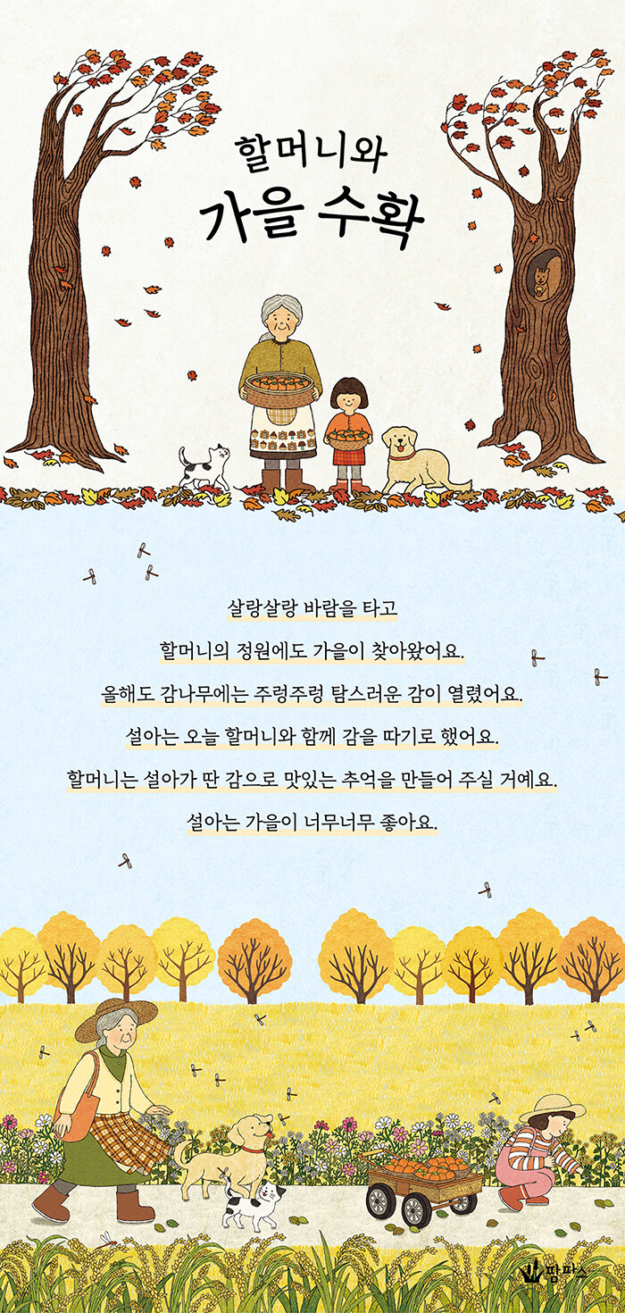 오늘 설아는 할머니의 정원 가득 열린 감을 따러 간다.