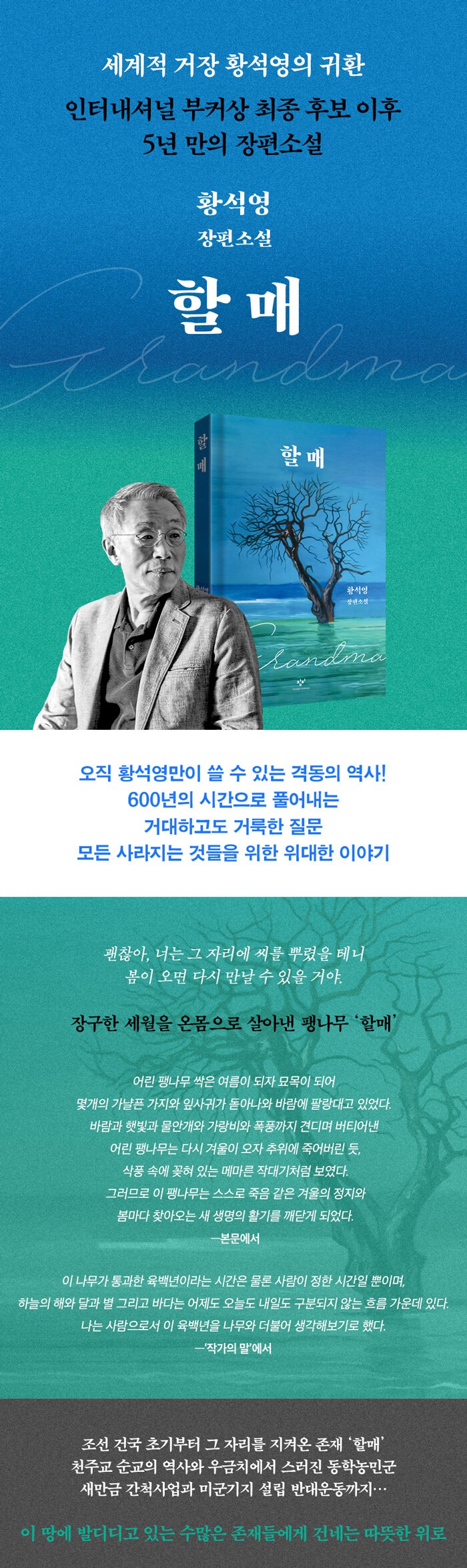 황석영의 『할매』는 하나의 작은 씨앗이 얼마나 광대한 이야기를 품고 있는지를 눈부시도록 아름답고 웅대한 시적 서사의 세계로 보여준다.