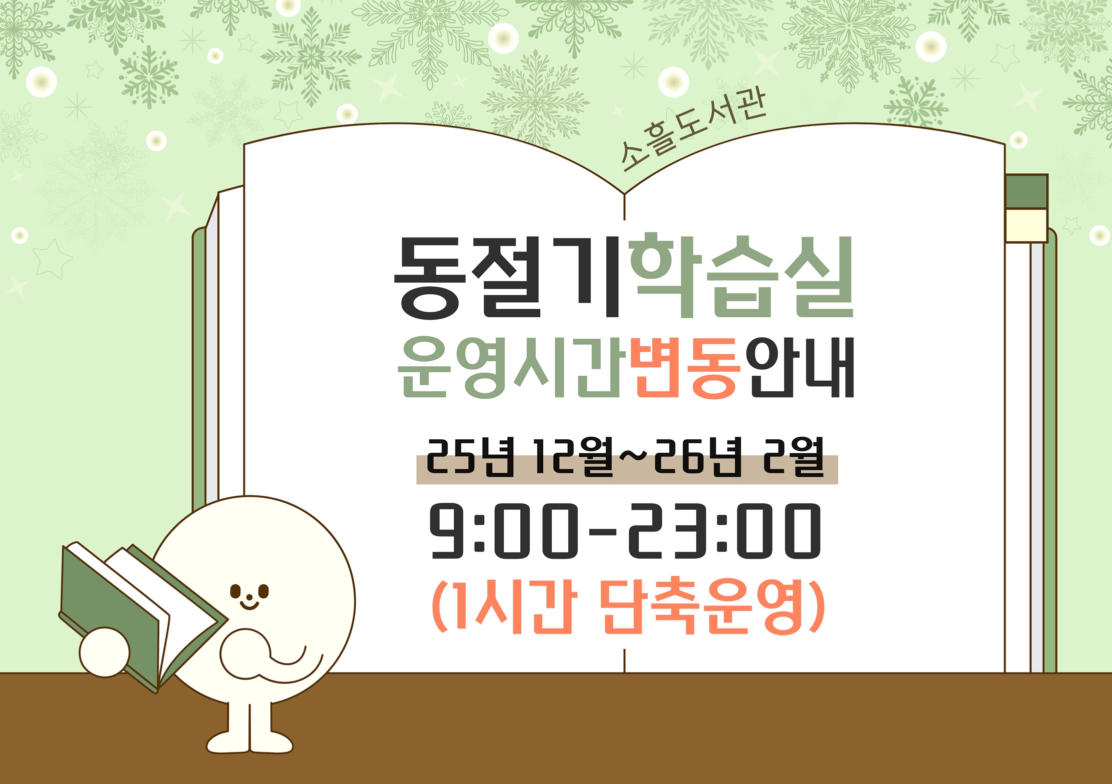 소흘도서관 동절기 학습실 운영시간 변동 안내