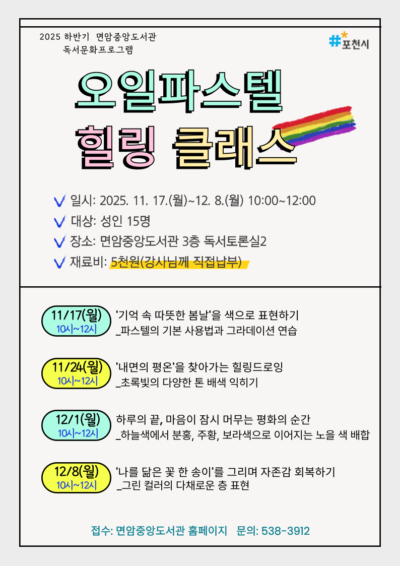 | 강좌명 | [2025 하반기] 오일파스텔 힐링 클래스 ※재료비 5천원 |