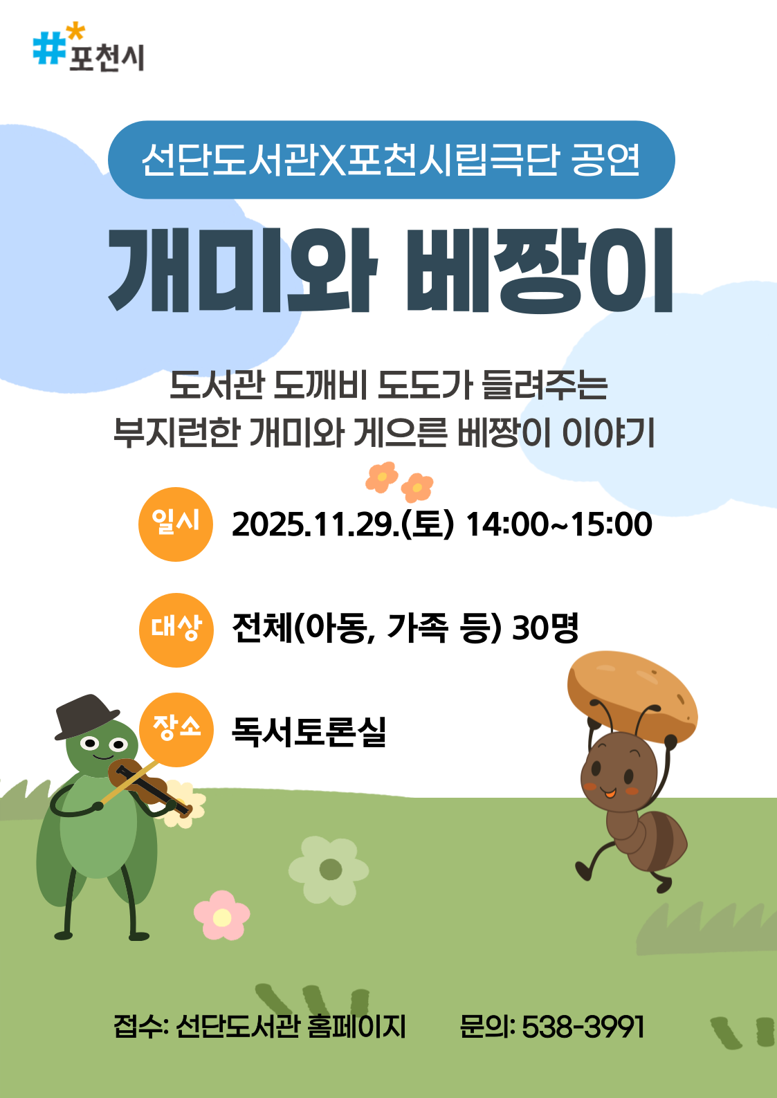 | 강좌명 | 선단도서관 X 포천시립극단 '개미와 베짱이' 연극 공연 |