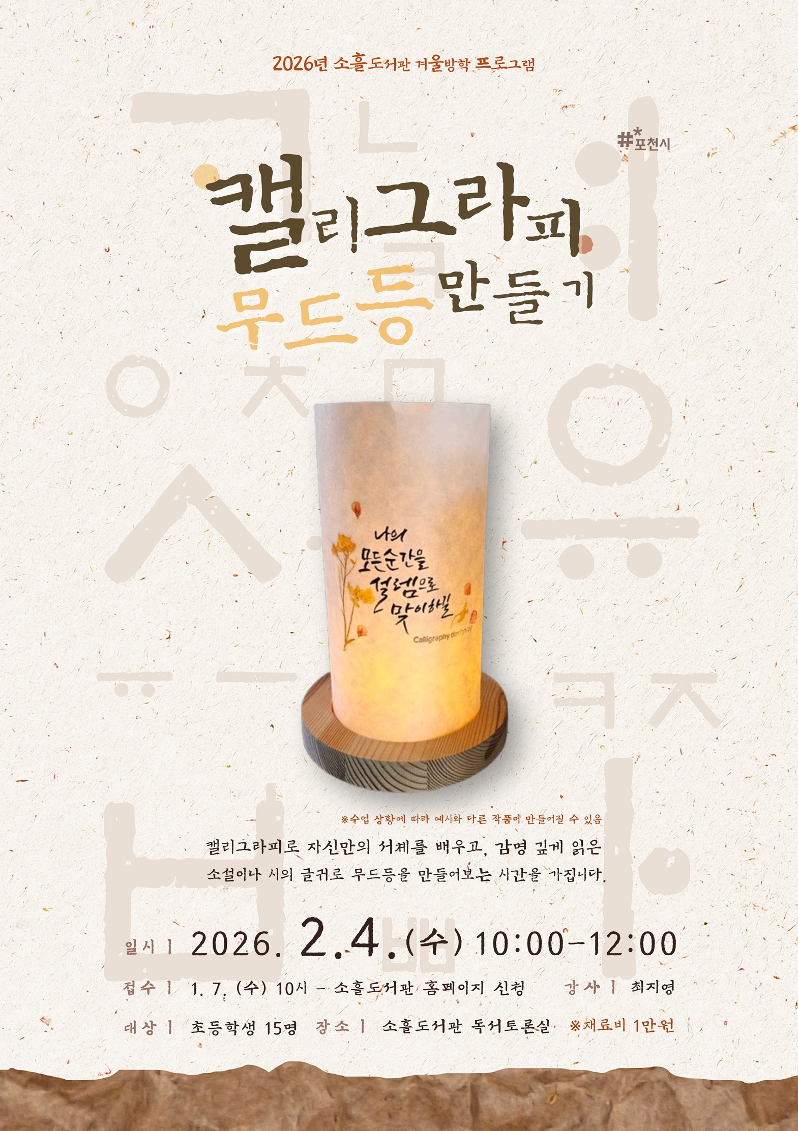 | 강좌명 | [2026 겨울방학] 캘리그라피 무드등 |