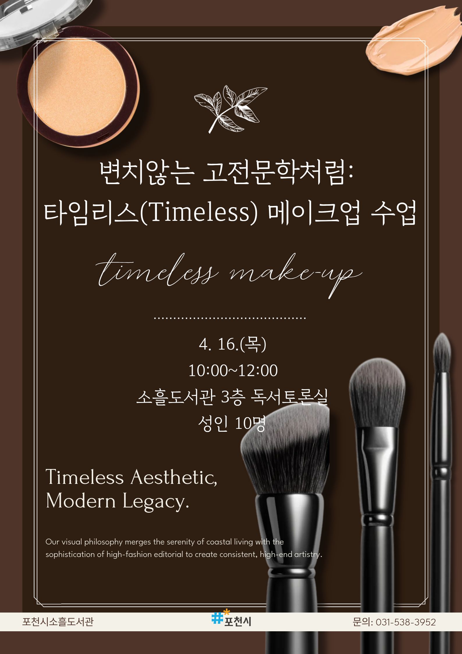 | 강좌명 | [2026 도서관주간] 변치않는 고전문학처럼: 타임리스(Timeless) 메이크업 수업 |