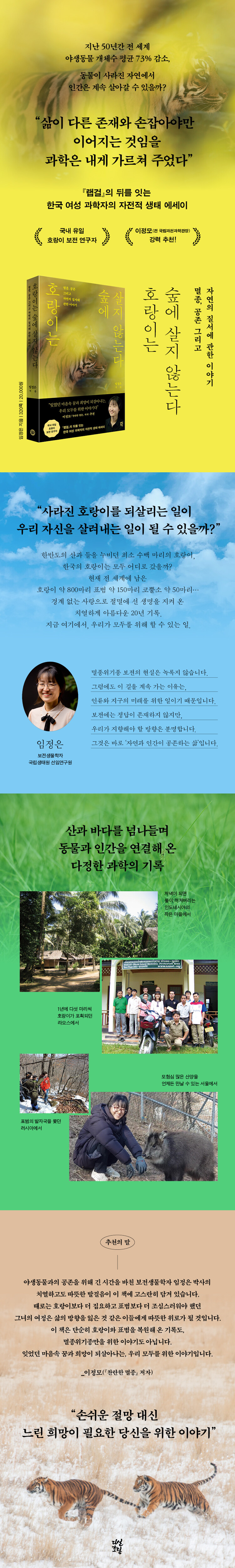 국내 유일의 호랑이 연구자가 된 보전생물학자 임정은의 첫 에세이로,